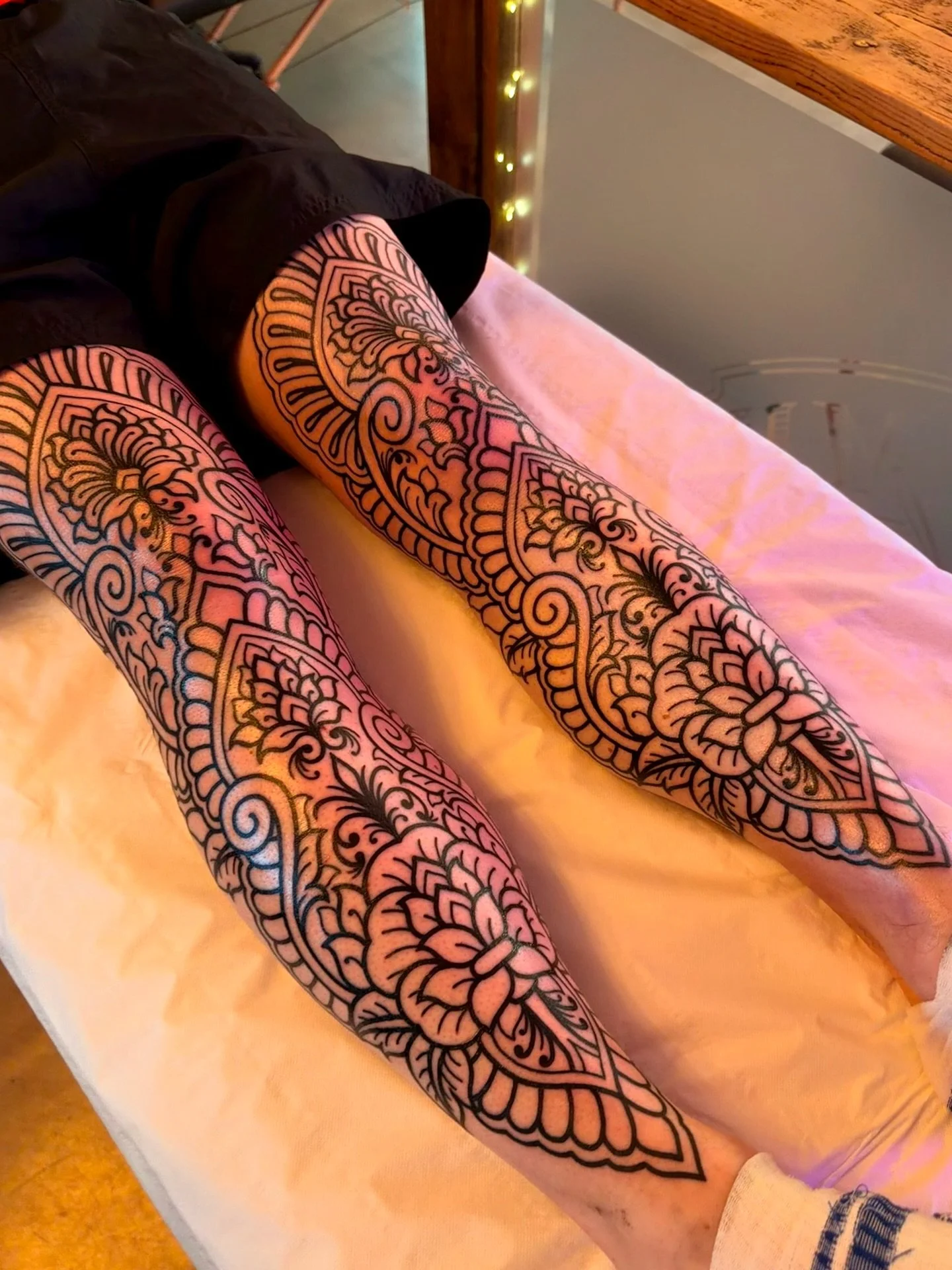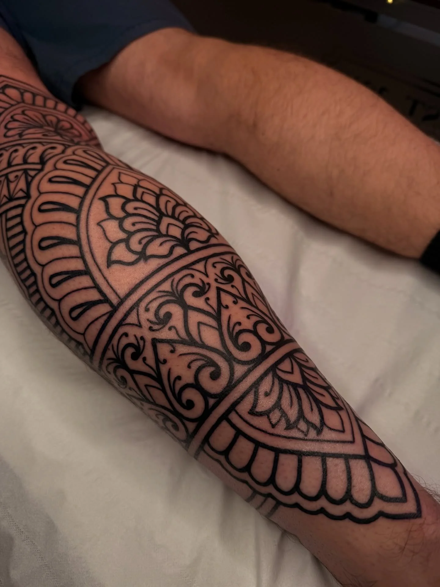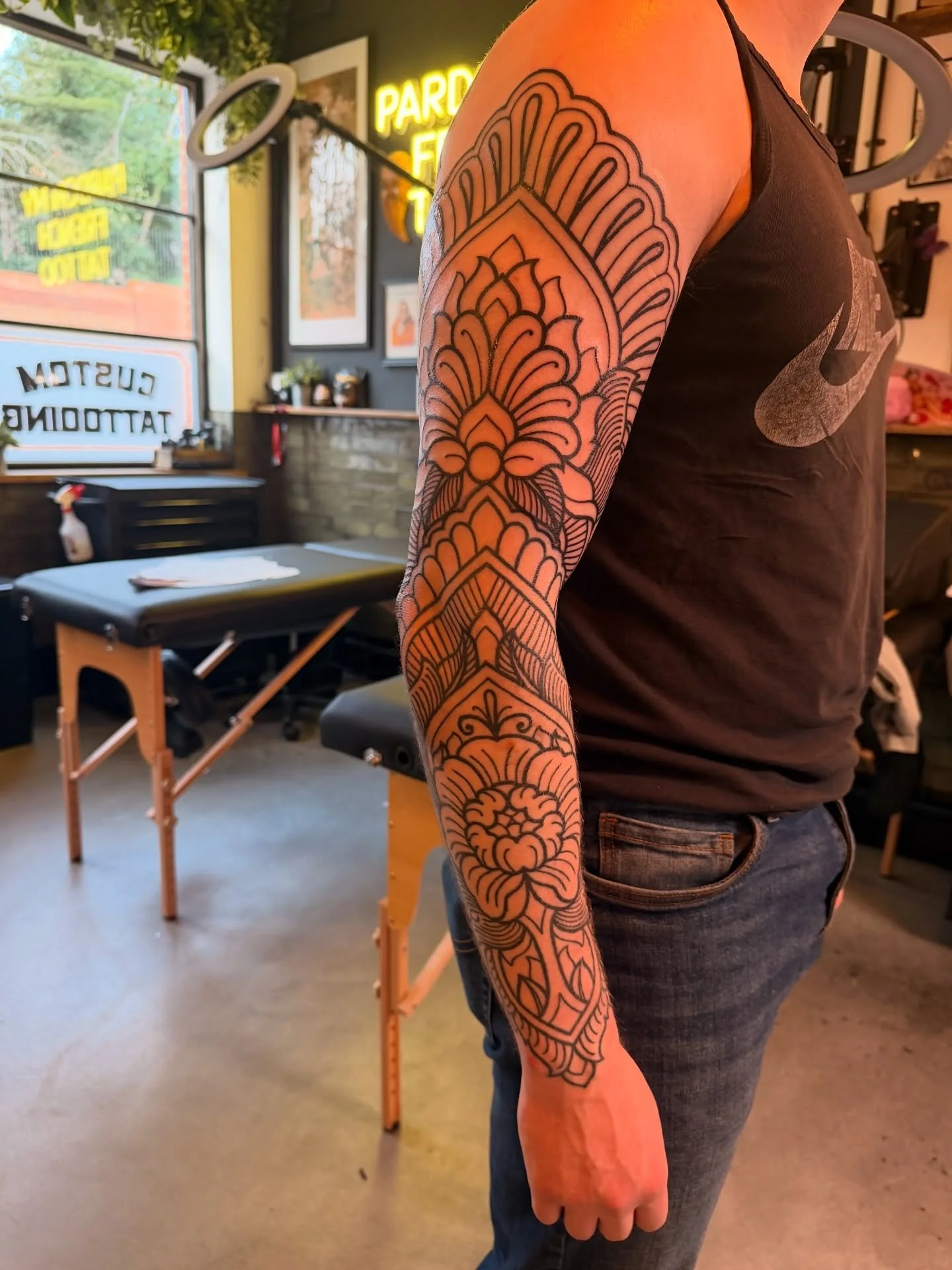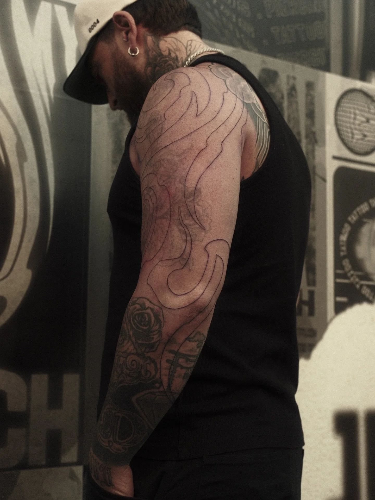 Oli is a co-owner of Pardon My French and a tattoo artist specialising in bold, ornamental designs. His work is defined by strong linework, rich detail, and large-scale compositions - often spanning full backs, sleeves or legs.