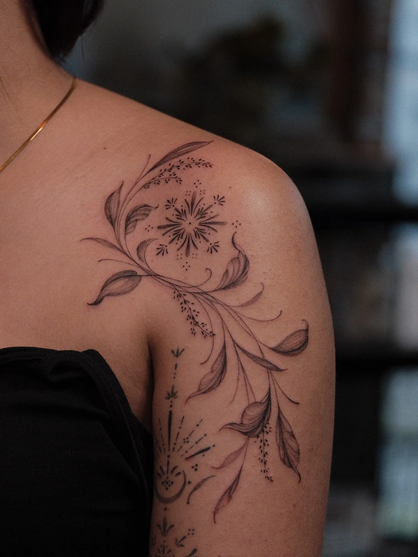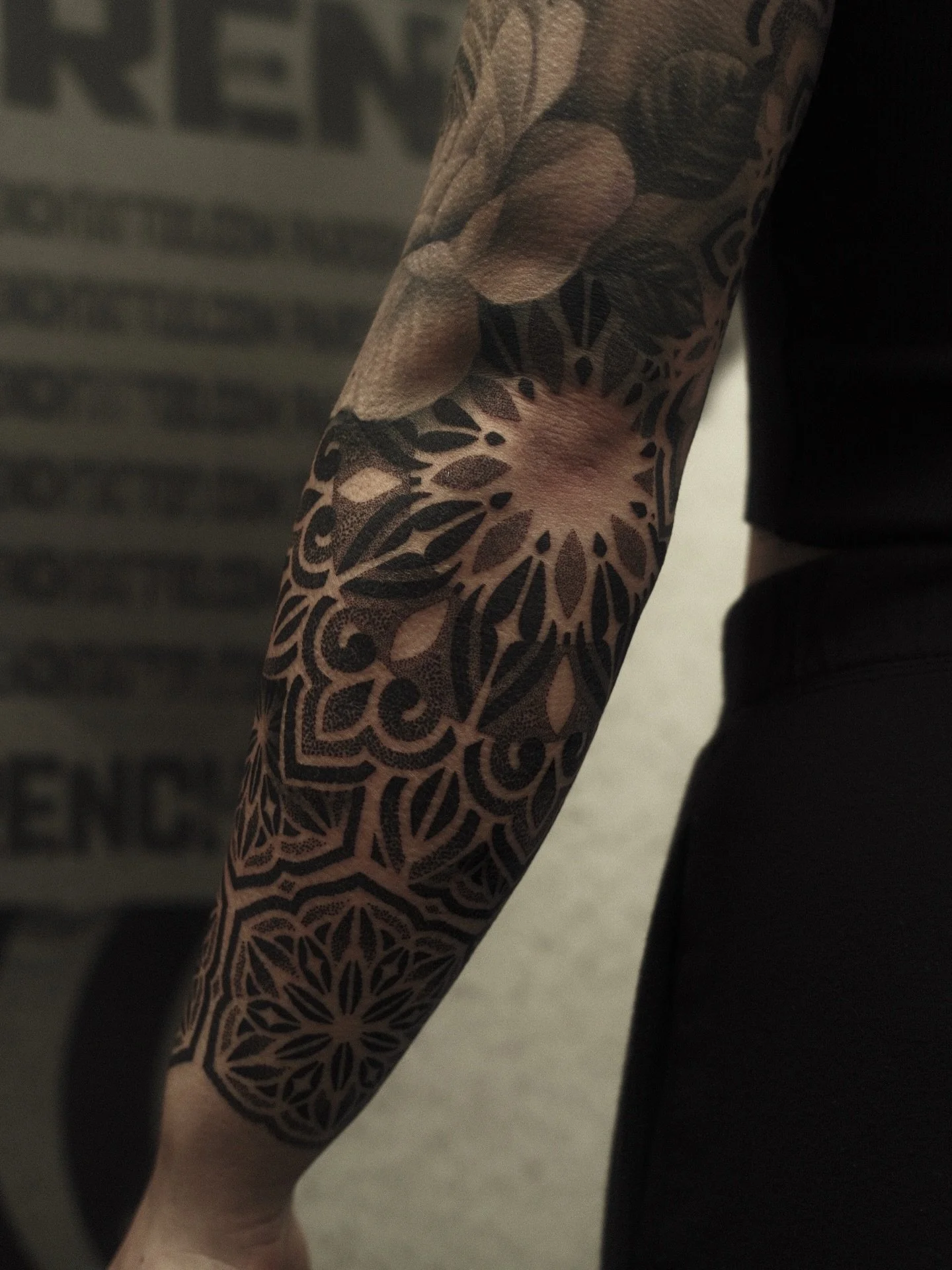 Her work combines structure and softness, often drawing on symmetry, pattern and subtle detail to create timeless, striking pieces. She takes a thoughtful, collaborative approach to tattooing - prioritising comfort, clarity and strong communication throughout every project.