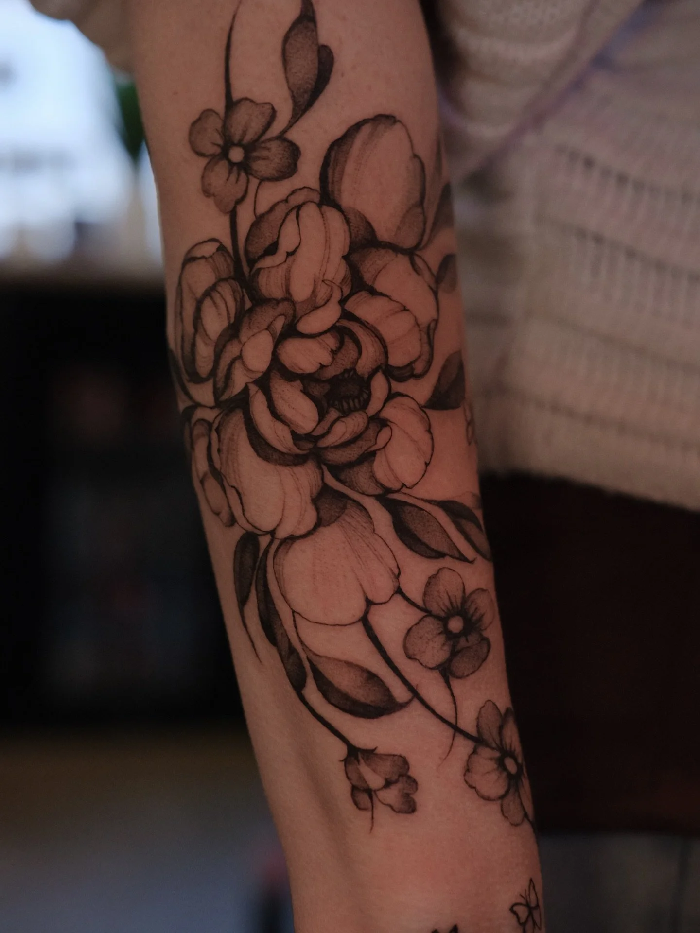 Her tattoo work centres on delicate florals, fine line designs and intricate detailing - executed with precision, softness and a sharp eye for composition. Known for her steady hand and thoughtful approach, Bea creates pieces that feel effortless but are built to last. Her work speaks quietly but powerfully, balancing elegance and strength in every tattoo.